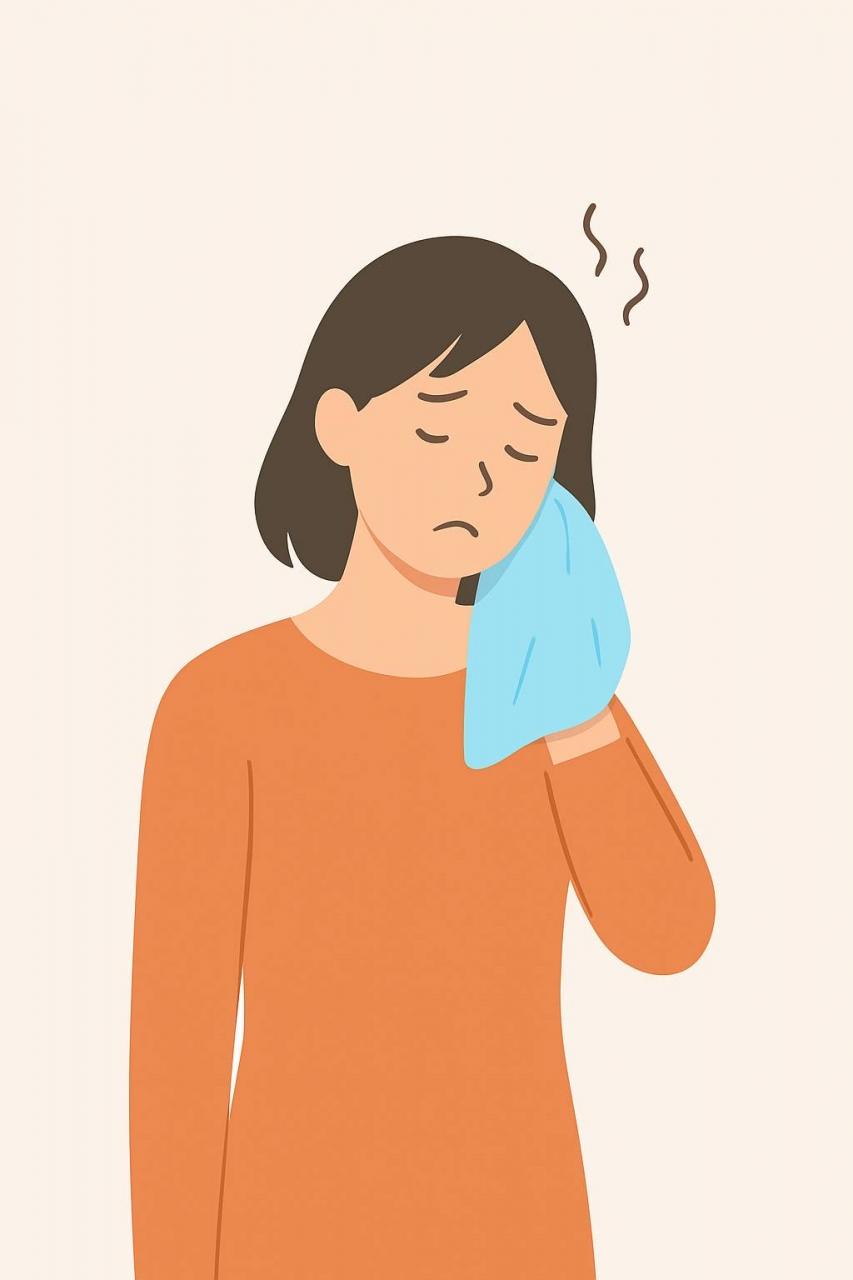 蒸しタオルを首筋にあてて1分。